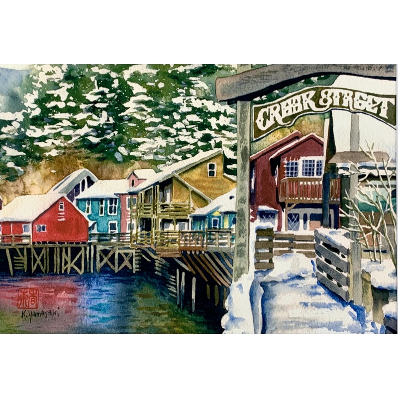 Matted 11" X 14" Watercolor Print Signed by Artist Kana YamasakiKana Yamasaki grew up in the South of Japan in a city called Wakayama. Since moving to Alaska, Kana has found comfort in the small town pace of Ketchikan, away from the nonstop bustle of Japan