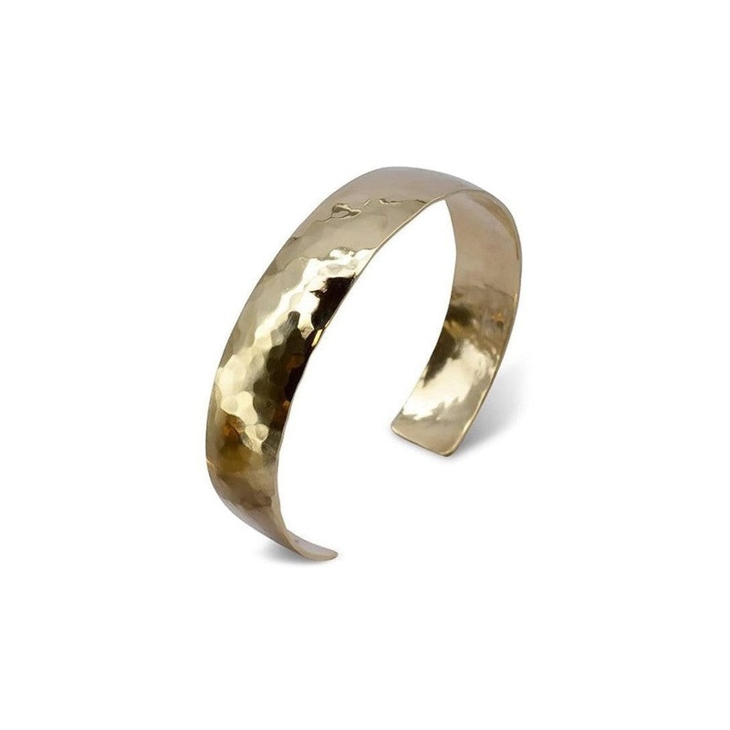 Solid 9ct Gold:Handmade from solid 9ct yellow, rose, or white gold, this Hammered Convex Solid 9ct Gold Cuff Bangle exhibits exceptional quality and durability. The choice of gold options allows you to select the colour that best complements your style.Please note that the model in the image is wearing the silver alternative todemonstrate thesize of the bangle.