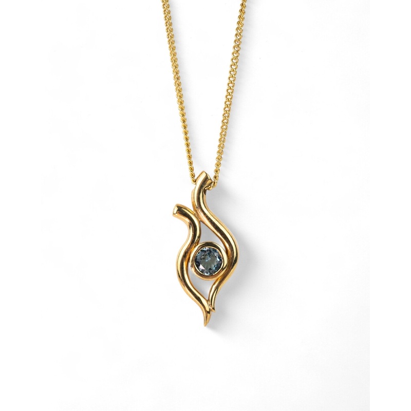 The Handmade Spiky 9ct Yellow Gold Gemstone Pendant is sure to leave a lasting impression.Gemstone Selection: Available in your choice of Aquamarine, Peridot, Pink or Green Tourmaline and Tanzanite.Captivating Aquamarine:Features a 5mm round faceted aquama