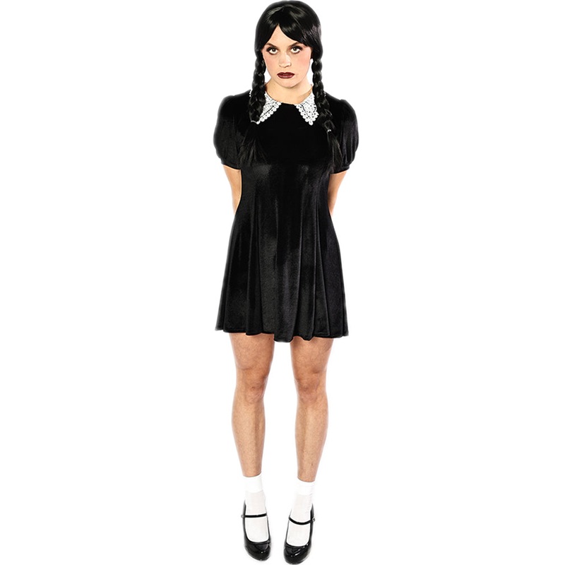 Item Includes:Dress.Fit and Sizing:See size chart image for details.Fabrics and Care:100% Velour.Hand wash, hang dry.Please note: Socks, shoes and skull prop are not included....We don't hug.Get woefully spooky for your next fancy dress party in our perfec