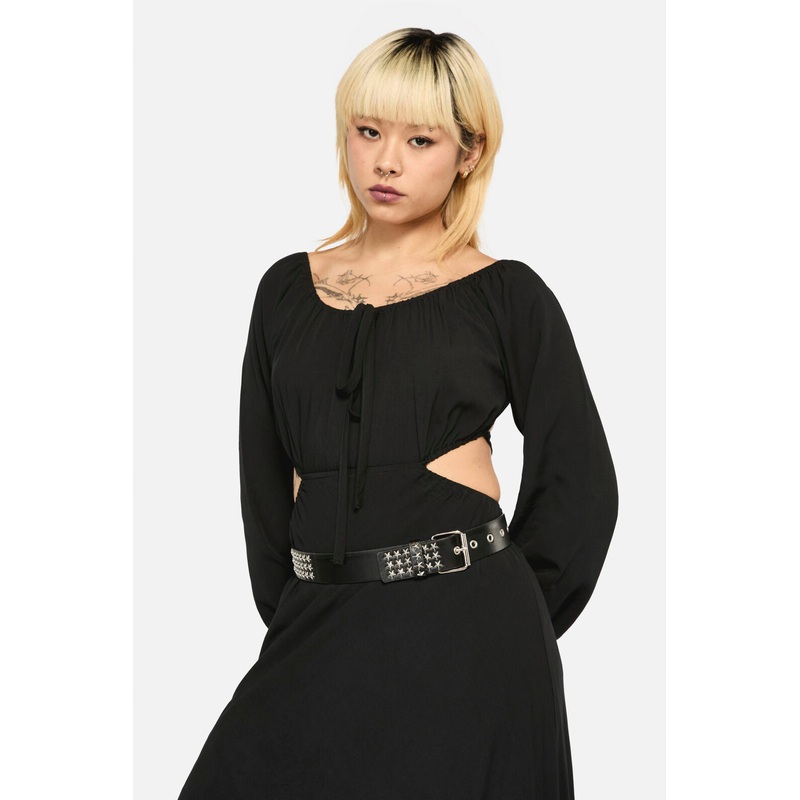 Star Studded Belt – A cool, easy to style, easy to wear belt – All over star shaped studs – Black vegan leather – Silver toned hardware – Comes in sizes XS, S, M and L – Width of approximately 3.7cm