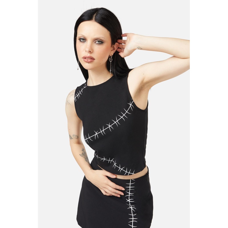 Gothic Style Tank Top- Sleeveless- Round Neckline- Fitted Shape- 'Stitched Up' Placement Artwork On Front- Made Fron Soft Cotton Elastane Jersey- Available In BlackProduct Code: BGFY261