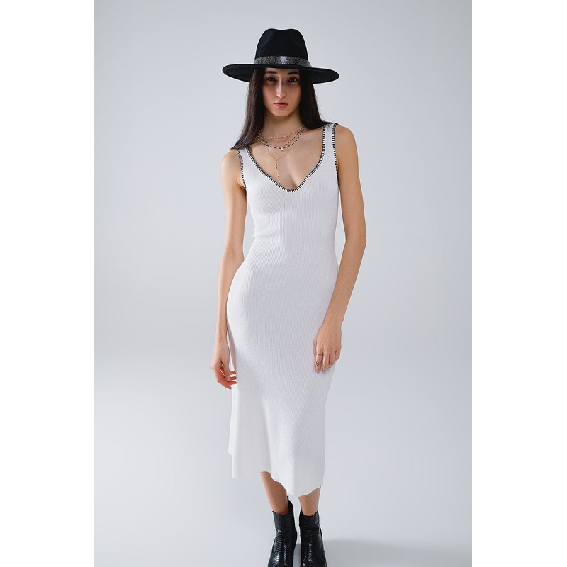 Step into summer with style in our A-Line Summer Body Hugging Dress, featuring a stylish white hue and unique black trim detail. Crafted from lightweight ribbed knit fabric, this dress offers a flattering body-hugging fit that accentuates your curves beautifully.