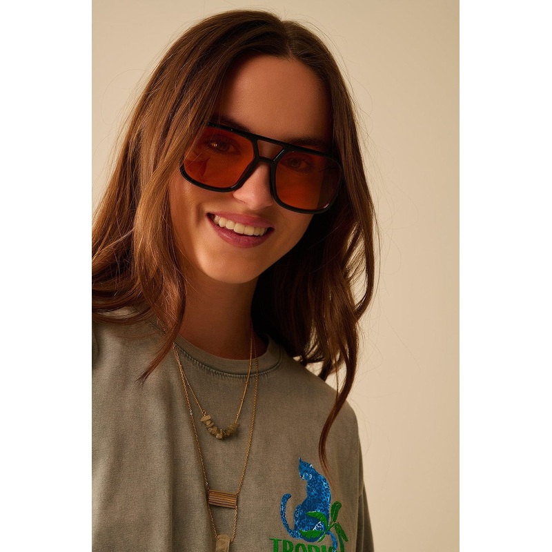 Sunglasses With Black Frames And Orange Lenses