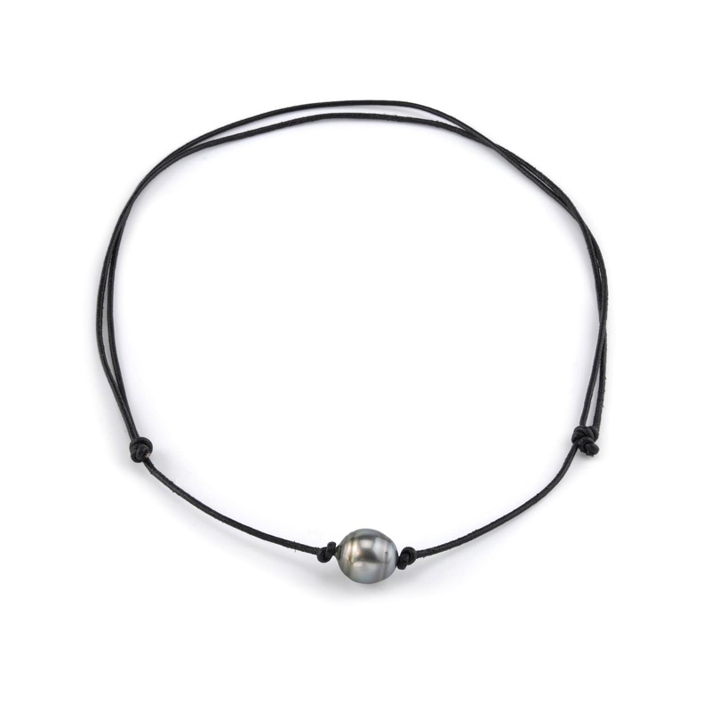 You’ll appreciate the elegance of this stunning piece, where a beautiful baroque pearl hangs gracefully from a sleek leather cord. The adjustable design allows you to customize the fit to your style, whether you prefer an edgy choker look or a classic princess length. Each pearl is unique, exhibiting lovely overtones that can range from deep greens to soft pinks. This piece is not just jewelry; it’s a statement that reflects your individual style.