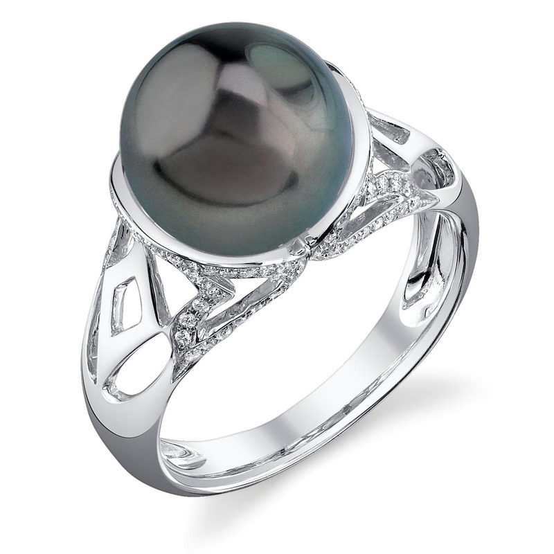 This stunning ring showcases a 10mm Tahitian South Sea pearl, chosen for its exceptional luster and deep, captivating hues. Set on exquisite 14K gold, it features radiant diamonds that add a touch of sparkle to your ensemble. You’ll appreciate how this piece can enhance both your evening attire and casual looks, making it a versatile addition to your jewelry collection.