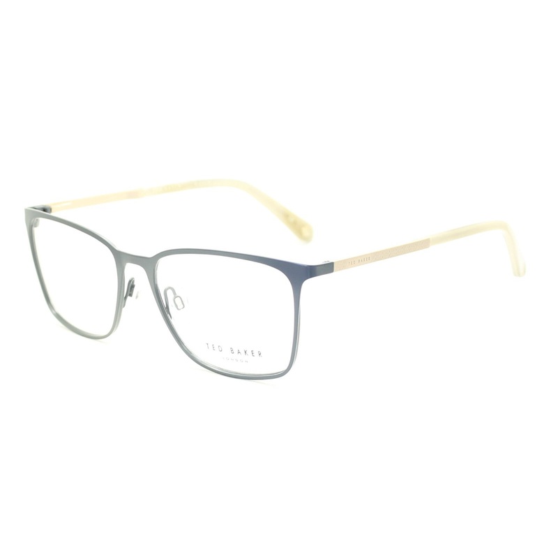 TED BAKER LONDON Raiden Full R im Frames 100% Authentic - 4286 905 Raise Your Glasses Satin grey metal frames Satin patterned gold metal sides with TB logos Gloss transparent light brown acetate arm end covers Precision spring hinges and adjustable nose pa