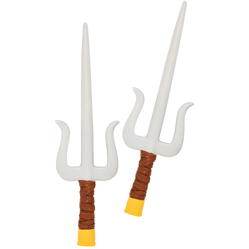 Get ready to battle the Foot Clan in Raphaels signature style with these Teenage Mutant Ninja Turtles Raphael Sais Prop 40cm. This pair of molded plastic sais feature painted details and a classic pitchfork shape, just like Raphs weapons in Teenage Mutant Ninja Turtles. Lightweight and easy to handle, these sais are perfect for playtime ninja training or completing your Raphael costume.