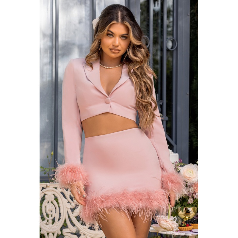 We’re loving this gorgeous “Tempting” blazer, babe. This fab nude style is cropped to perfection, highlighting your midriff whilst the plunging v neckline adds a sophisticated touch. Nothing says festive like feathers and this crop blazer has the perfect feather trim detail on the cuff to add a subtly statement look. You make the plans, we’ll provide the outfit.