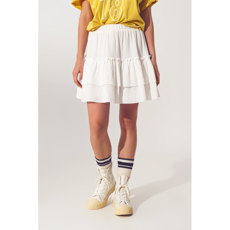 Textured Ruffle Mini Skirt In White
