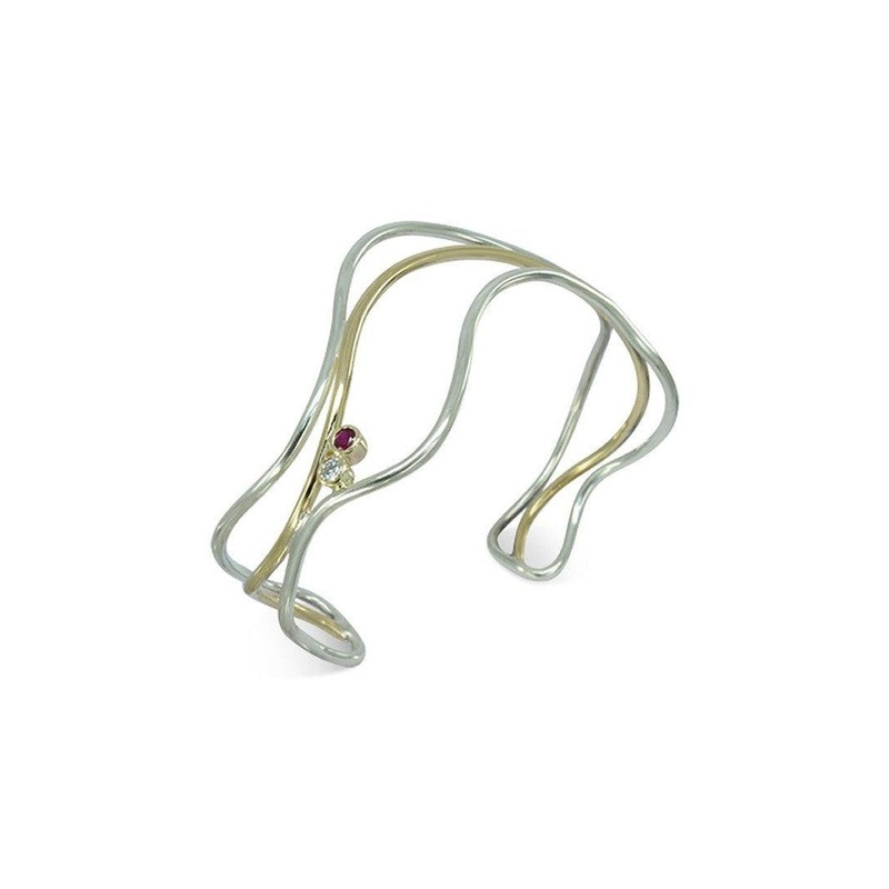 - Specifics: The strand section is 2mm round and weighs approximately 22g, set with a 3mm round diamond cut ruby and 2.8mm and 2.5mm round brilliant diamonds. The width at the front is 30mm (curving to 40mm) and at the back 20mm.