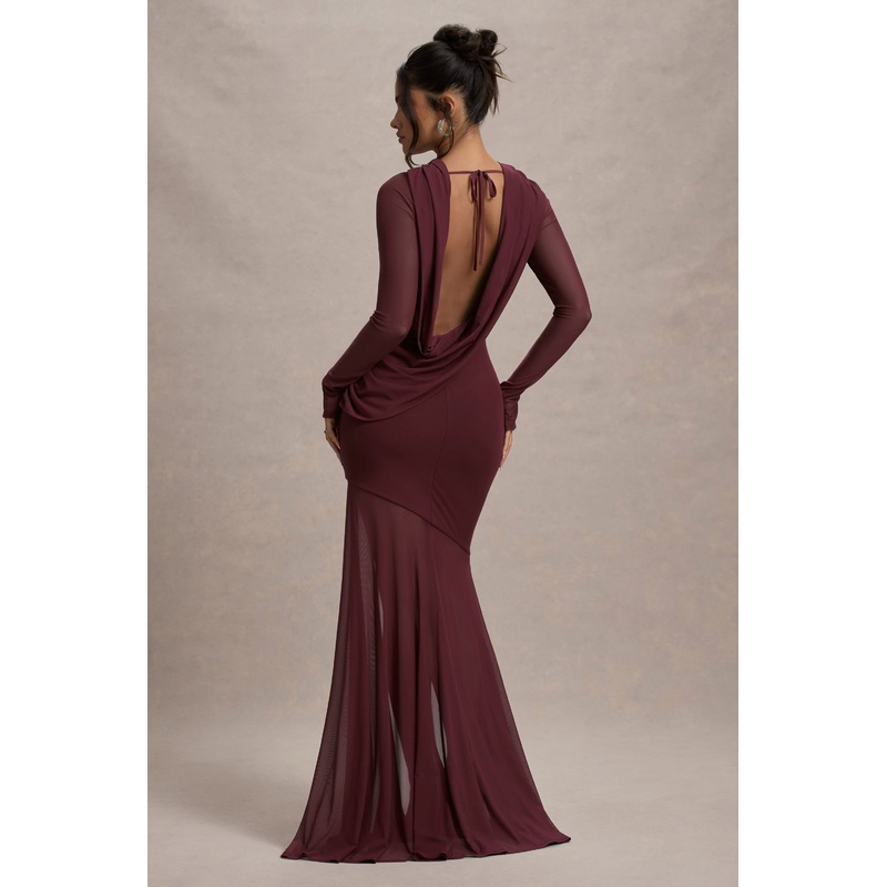 Tigerlily | Port Mesh Long-Sleeve Open-Back Maxi Dress
