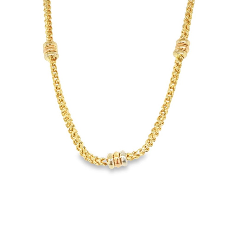 Tri-Color 14 Karat Fancy Chain With Tri-Tone Disk Beads Estate Jewelry Length 16.5 Gram Weight: 25.05