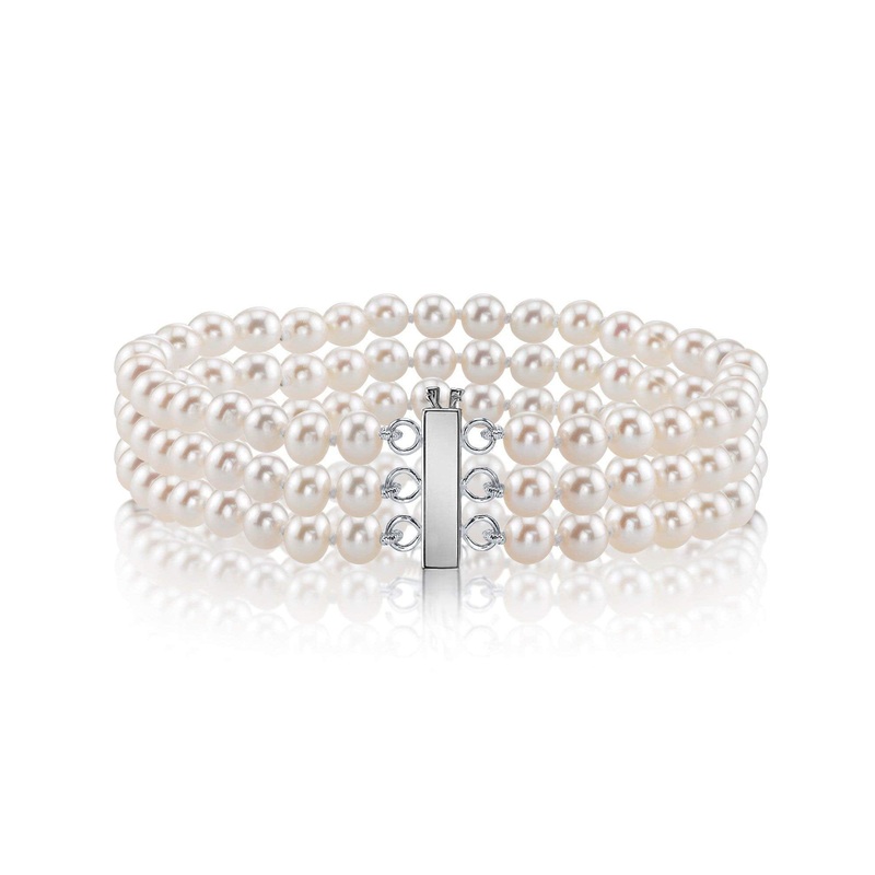 Hanadama, meaning Flower Pearl, signifies the pinnacle of quality in Japanese Akoya pearls, certified by the Japan Pearl Science Laboratory. This exquisite bracelet features three strands of hand-picked white Hanadama Akoya pearls, each showcasing 'Very Hi