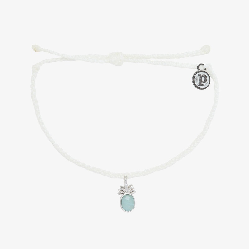 Get out-of-office vibes with our Tropical Breeze Bracelet. Available in rose gold with an opal glass stone this bitty braid style features a dangling pineapple-inspired charm, filled with a 100% genuine gemstone thats just as unique as you are!