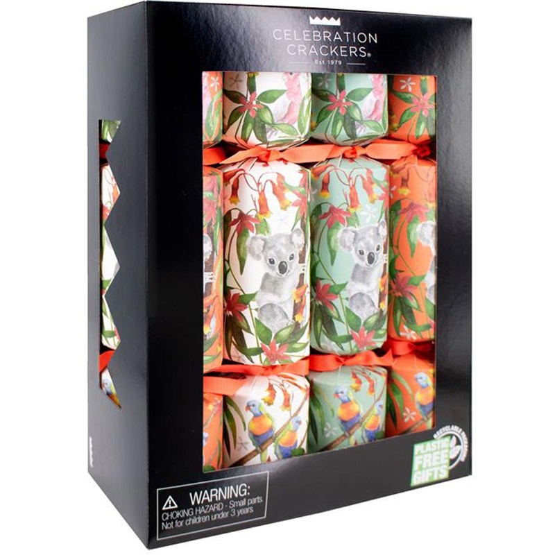 When you have Christmas lunch you can’t go wrong with our Tropical Koala Deluxe Christmas Crackers Pack of 8. Featuring a pack of 8 deluxe Christmas crackers styled with unique tropical koala illustrations with red ribbons and green and red floral prints on an assortment of red, white and light green Christmas crackers. Each cracker has a satisfying snap, contains a hat, an amusing Joke, and a great gift. Check out our range of Christmas tableware for a coordinated look.