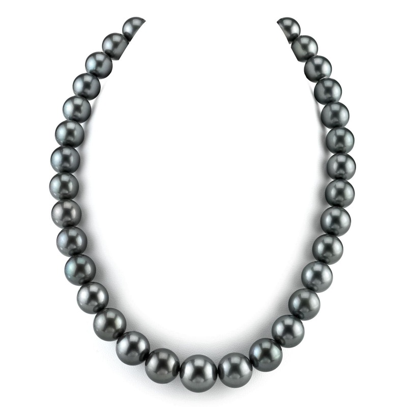 This exquisite necklace features a collection of perfectly round pearls that showcase the enchanting beauty of Tahitian pearls. You’ll notice the deep, dark charcoal grey body color, which serves as a stunning backdrop for the subtle overtones of blue-green and steel that dance across the surface of each pearl. The AAA quality pearls, measuring 11.0-13.0mm, boast a remarkable luster, making them a captivating addition to your jewelry collection. Each pearl is meticulously double-knotted on matching black silk and finished with your choice of a 14K gold clasp, ensuring both elegance and durability.
