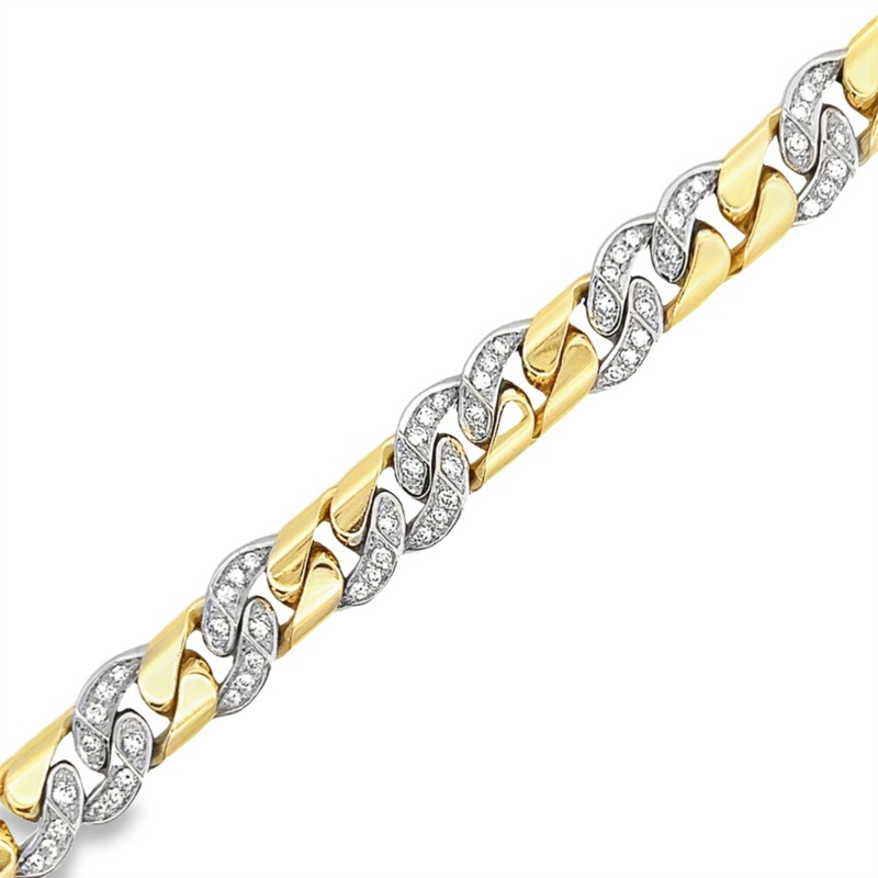 Estate Two-Tone 18 Karat Curb Link Diamond Bracelet Estate Jewelry Length 7.5 With 92 2.30Tw Round G/H Si1/Si2 Diamonds Gram Weight: 82.19Jewelry Type: Diamond Fashion