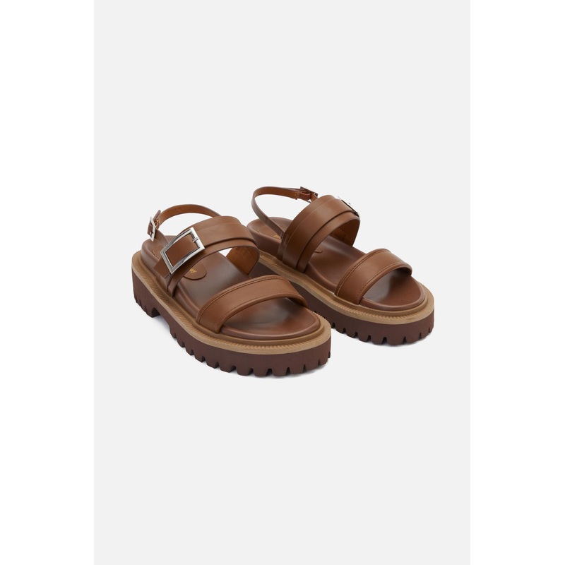 Two Tone Sandal – A great shoe for those warmer days – Easy to wear, easy to style – Vegan leather – Open toe sandal – Shades of brown – Silver toned buckles