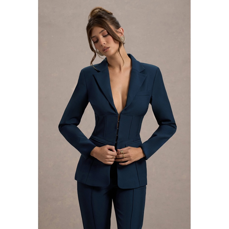 Unbeaten | Navy Fitted Corset Blazer Jacket
