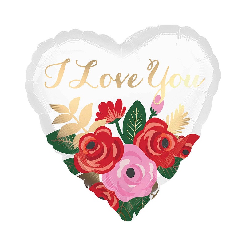 Item Includes:Balloon.Features:Heart-shaped foil balloon.'I love you' printed message.White balloon with red and pink rose bouquet print.Self-sealing.Sizing:45cm / 18in.Material:100% Foil.Please note: Balloons do not come inflated. Helium not included.Expr