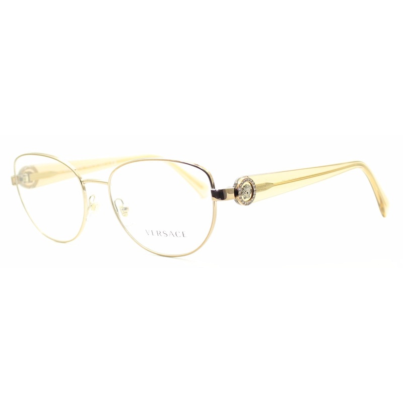 VERSACE Full Rim Frames - 100% Authentic - Mod 1246-B 1052 Polished rose gold metal frames Crystal set Versace hinges with gloss transparent light brown acetate sides Adjustable nose pads for a comfort fit Brand new - Never been worn Lens Width = 54mm Fram
