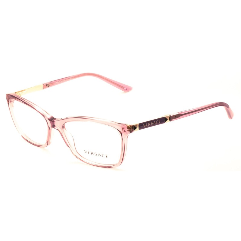 VERSACE Full Rim Frames - 100% Authentic Mod 3186 5279 Gloss transparent violet acetate frames and arms set with Versace logos and gold metal studs Precision spring hinges for a comfort fit Brand new - Never been worn Lens Width = 54mm Frame Height = 38.5m
