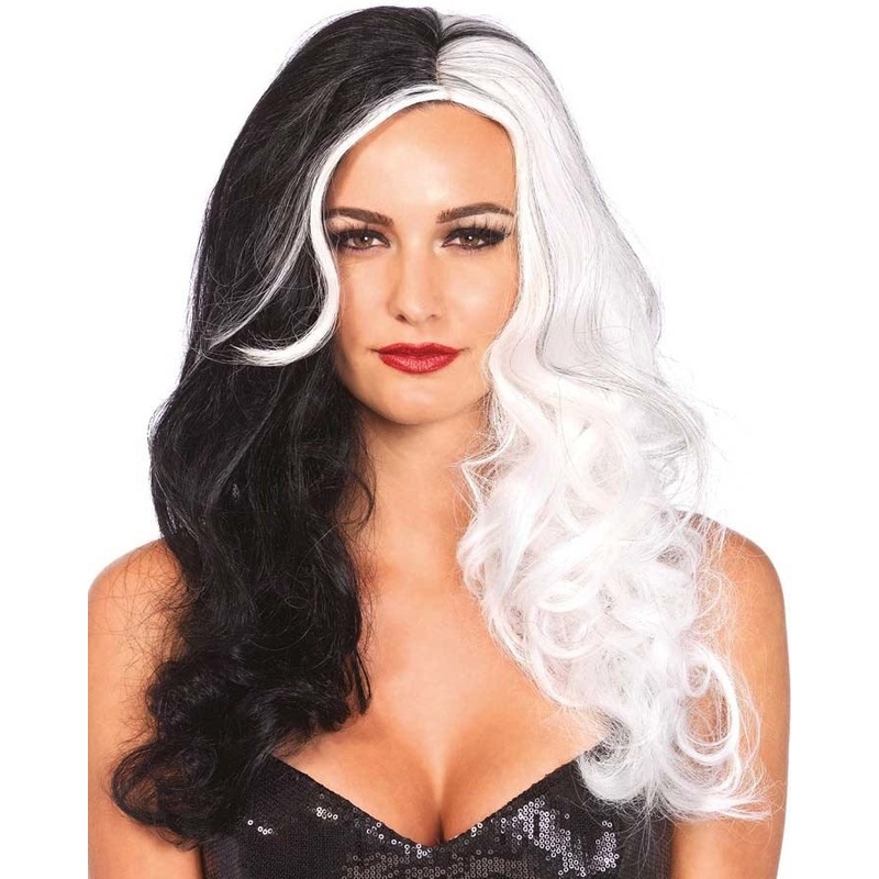 YUU7745288424Villain Long Black and White Wig