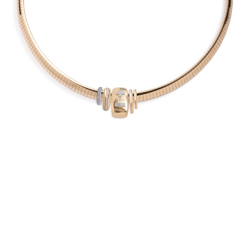 Handcrafted in 18 karat yellow gold, this Medium Sleek Collar Chain Necklace is our newest layer. The center Vivacity Oversized Heart Slide features pav diamond plus and minus signs, in combination with the French phrase: Qu’hier, Que Demain: today more than yesterday and less than tomorrow. This sentiment speaks to the accumulation of experiences that produce more love, a larger heart, and a fuller life. Each treasured memory builds on the last, encouraging us to enjoy today even while our bright tomorrows lie ahead. To the left of the center Vivacity slide, we have the Pave Heart Slide in white gold and diamonds, and the Pav Diamond Gemstone Heart Slide in yellow gold. To the right of the center Vivacity slide, we have the Oversized Oval Heart Slide and the Oval Heart Slide in yellow gold. All 5 talismans represent True Love. True Love gives life meaning and purpose.