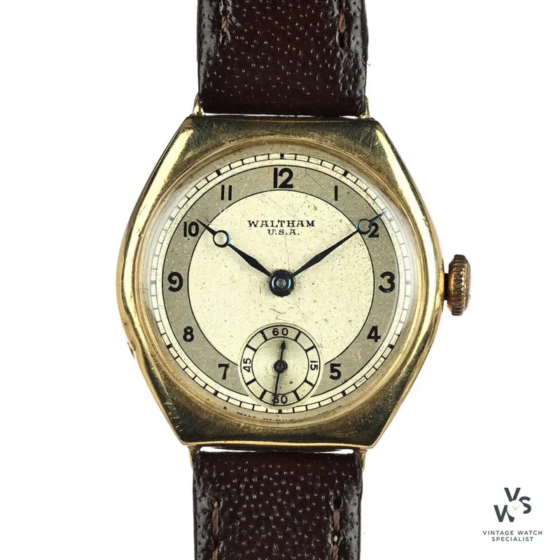 A Thoroughly Charming Vintage Waltham Watch Crafted from 9k gold with a Stunning Silver Sector Dial and Blued Steel HandsThe Waltham Watch Company, established in 1850 in Waltham, Massachusetts, represents a defining chapter in the history of American indu