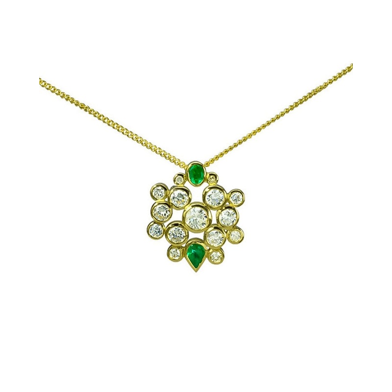 - Recycled Yellow Gold:Handmade in recycled 18ct yellow gold, this Water Bubbles Emerald and Diamond Pendant not only showcases the beauty of your gems but also promotes sustainability.
