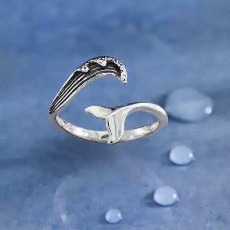 This Sterling Silver Adjustable Wave and Whale Tail Ring will remind you of whale watching and catching the graceful tail of a whale gliding through the salty waters. Whales are great navigators, and are very communicative, always expressing their emotions