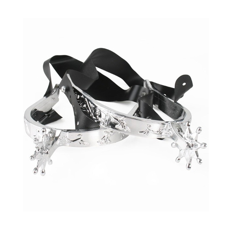 Item Includes:2x Spurs.Fit and Sizing:One size fits most.Yee ha cowboy!Show off that you are the roughest, toughest gunslinger in the west and with these Western Spurs. These spurs come in black faux leather with silver plated spurs attached around the bac