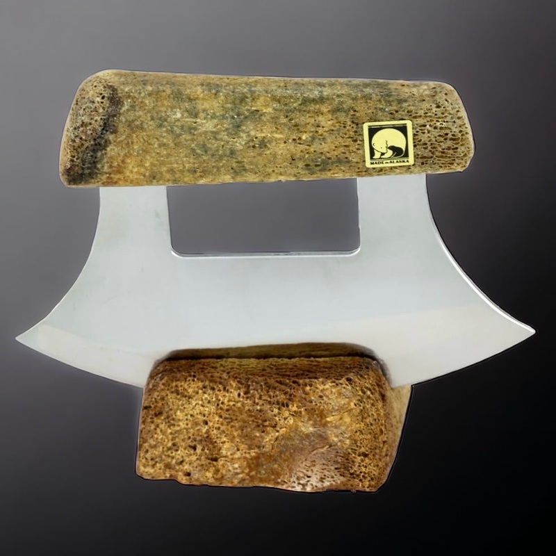 Made in Alaska Fossil Whale Bone Ulu Knife Size - 5 1/2" (440 Stainless Steel blade)Bone Stand is IncludedChopping board sold separately...Click Here!