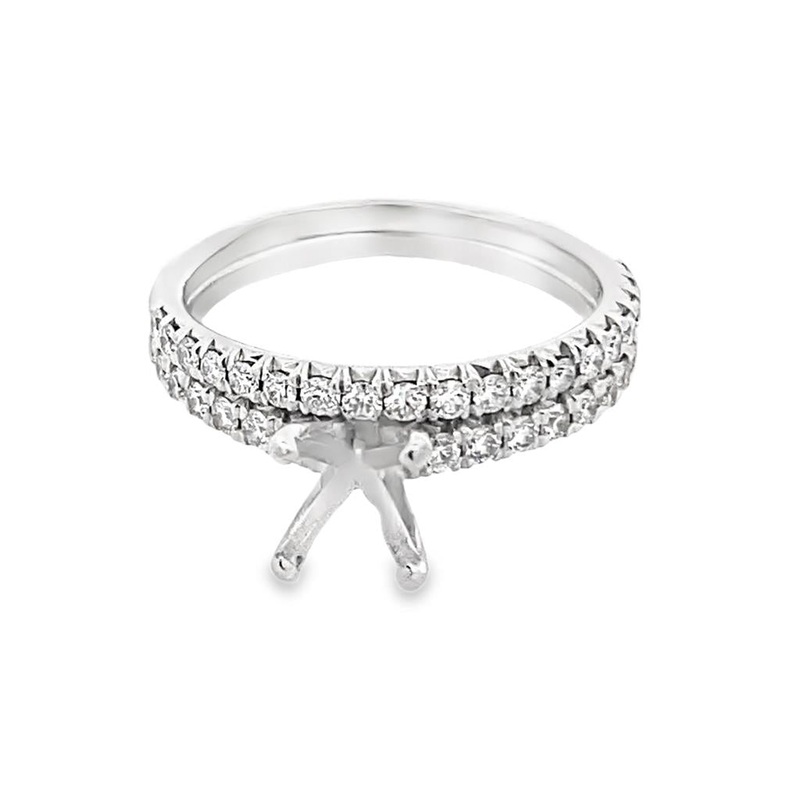 Estate Diamond Semimount/Band Set consisting of sixteen (16) rb diamonds in the eng ring and nineteen (19) rb diamonds in the matching band, approx. 1/2ctw, of SI2/I quality; a total ring set weight of approx.3.8grams.