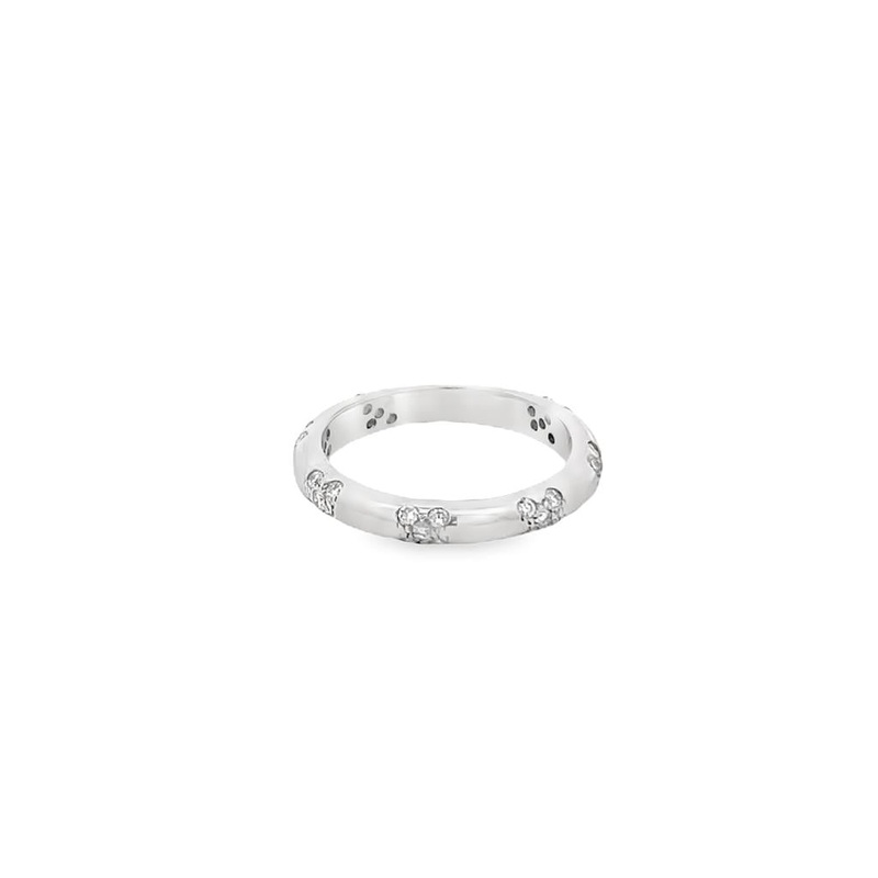 White 18 Karat Flower Station Estate Band With 35=0.32Tw Round Diamonds