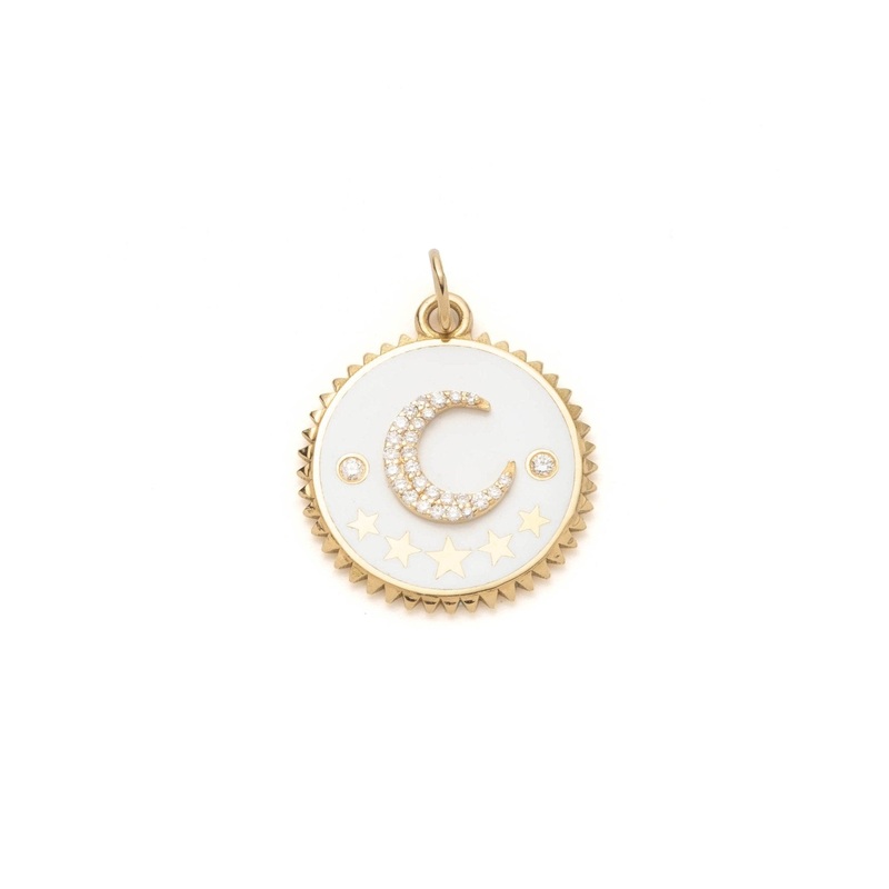 Handcrafted in 18-karat gold, this Medium Champleve Medallion fused in white enamel represents wholeness. Every day, every moment, we make choices. We have a choice regarding what kind of energy we want to put out there in the world. The symbol of the Crescent Moon was chosen for its Latin root word, crescere, to grow. It reminds us that every day is a new day to grow inwardly by seeking truth and enlightenment.