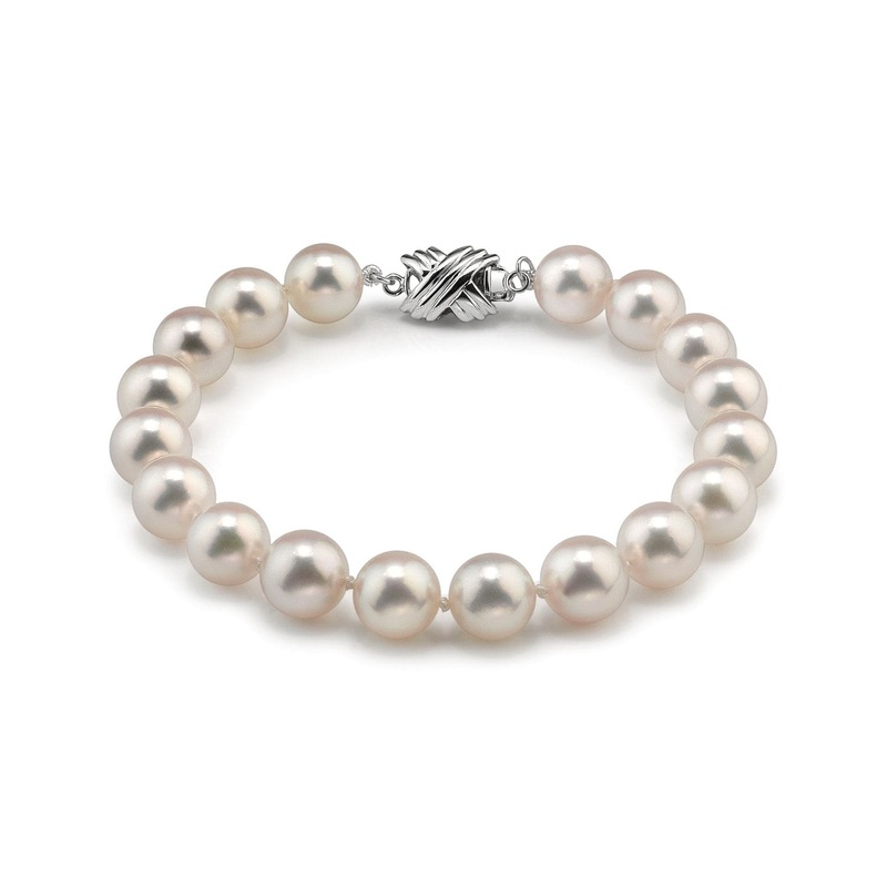 White Hanadama Japanese Akoya Pearl Bracelet, 8.5-9.0mm