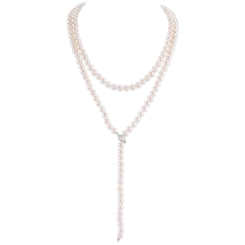 White Japanese Akoya Pearl Adjustable Lariat 51-Inch Rope Length Necklace – AAA Quality