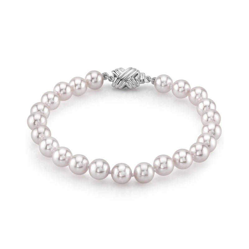 Indulge in a piece that embodies timeless elegance. This exquisite bracelet features smooth, lustrous AA+ or AAA quality saltwater Japanese Akoya pearls, each hand-selected for their brilliant luster and beautiful overtones. Measuring 6.5-7.0mm, the pearls are perfectly round, offering a classic style that fits seamlessly into your life in New York City. Each bracelet measures a standard 7.5 inches, but we can customize it for your unique wrist size. You’ll appreciate the craftsmanship, as each pearl is double-knotted by hand on matching white silk, made to order in our Los Angeles production office.