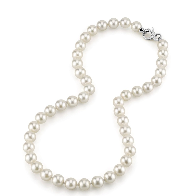 Elegance defines this stunning piece of jewelry, crafted with 9.0-9.5mm White Japanese Akoya pearls. These pearls are among the largest available and are hand-selected for their exceptional luster, captivating overtones, and pristine surfaces. Each necklace is tailored to your preference, whether you choose the classic 16-inch length or opt for a modern 51-inch Pearl Rope. With a choice of a 14K Gold Clasp and meticulous double-knotting, this piece is not just jewelry; it’s a statement you’ll cherish forever.
