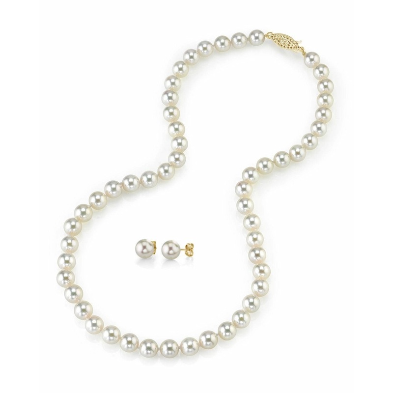 White Japanese Akoya Pearl Necklace & Earring 2-Piece Set, 7.0-7.5mm