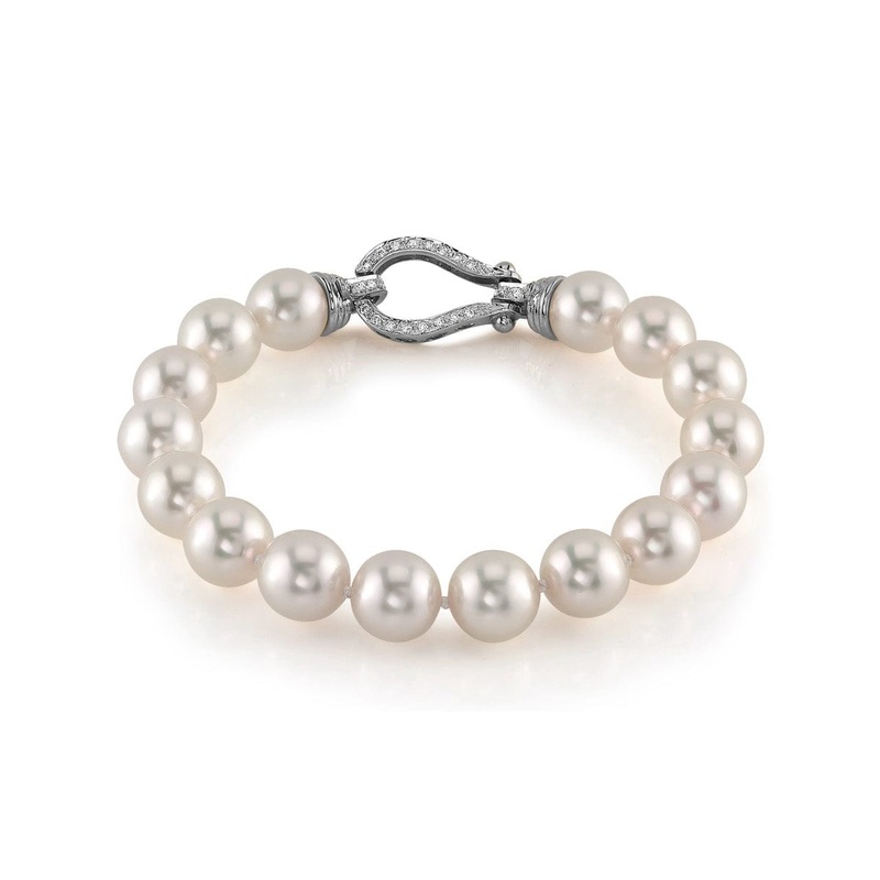 White Japanese Hanadama Akoya Pearl Bracelet, 9.5-10.0mm