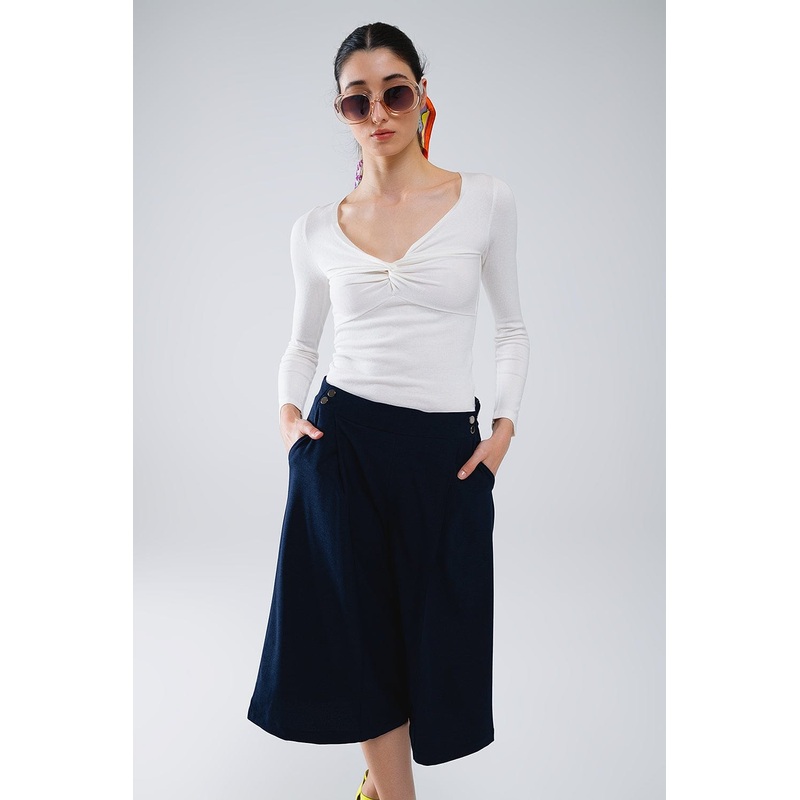 White Long Sleeve Shirt With Knot Detail And V-Neck