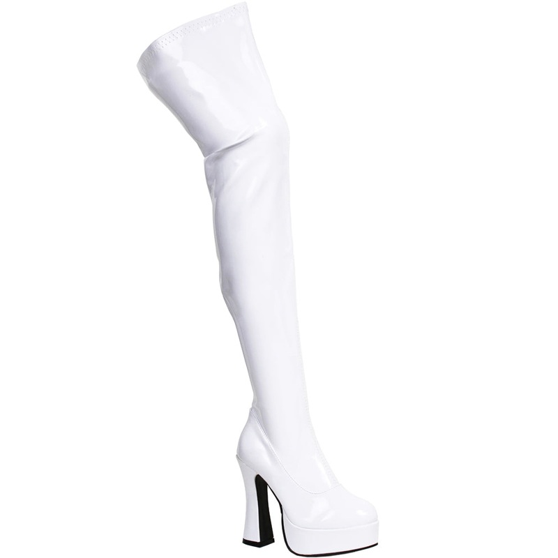 YUU7745311444White Patent Thigh High Platform Deluxe Womens Boots