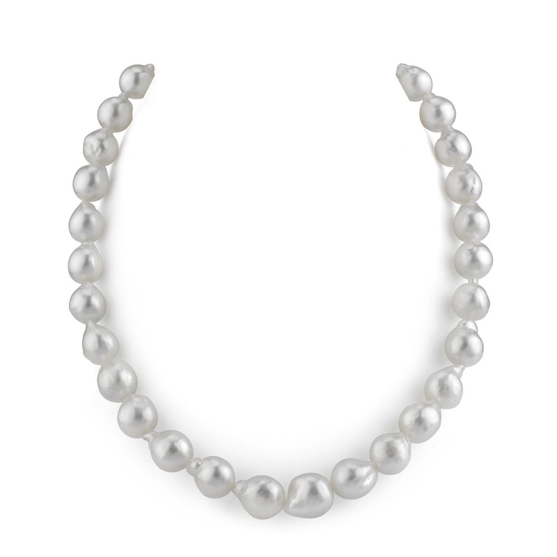 Imagine wearing a necklace crafted from exquisite Australian White South Sea baroque pearls, ranging from 10.0 to 11.5mm. This stunning piece showcases the unique, natural beauty of baroque pearls. Their irregular shapes and radiant luster make each pearl truly one-of-a-kind. Finished with an elegant 14K gold clasp, this necklace is perfect for adding a touch of sophistication to your wardrobe. You’ll appreciate how effortlessly it complements your style, whether you’re in a meeting or enjoying a night out.