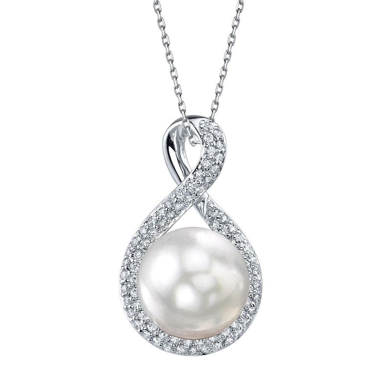 This elegant pendant features a beautifully smooth outline that gracefully leads to a stunning White South Sea pearl. Each pearl is sourced directly from the tropical atolls of Northern Australia, showcasing a radiant luster thats simply captivating. Known