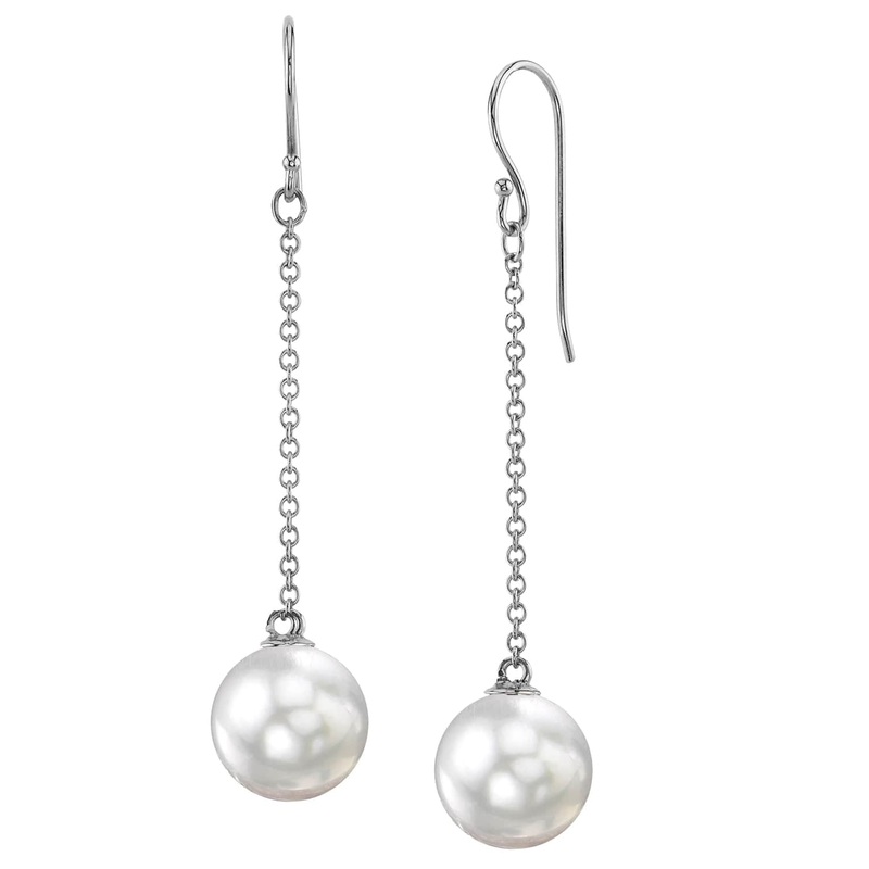 These elegant dangle earrings showcase two stunning 10-11mm AAA White South Sea pearls, known for their exceptional luster and beauty. You’ll appreciate how they catch the light and enhance your style effortlessly. Set in 14K gold, they give a classic yet luxurious touch to any outfit. Perfect for both casual outings and formal occasions, these earrings are a must-have in your jewelry collection.