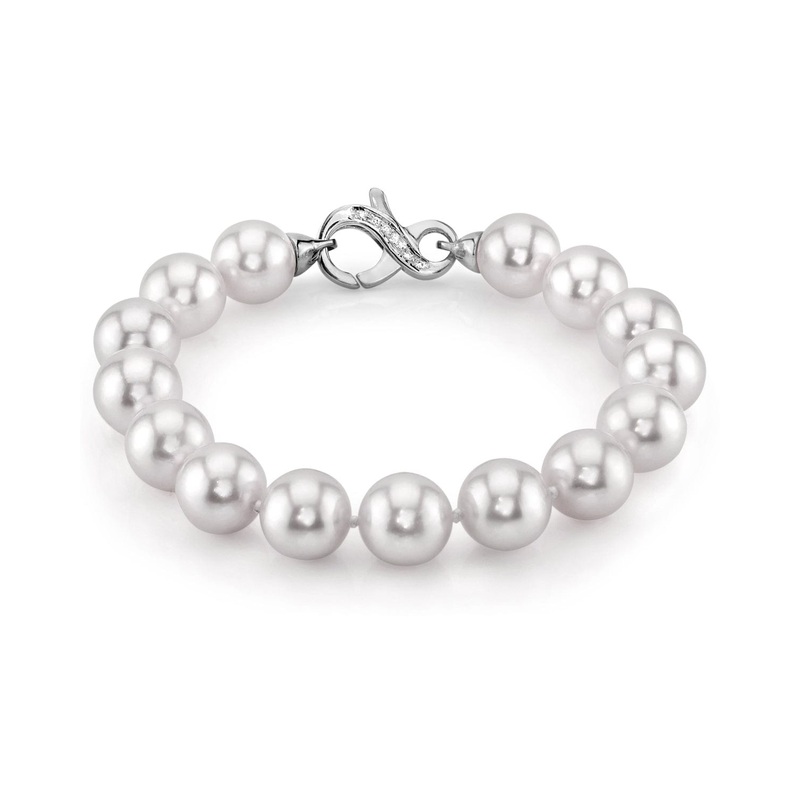 This stunning bracelet showcases exquisite White South Sea pearls, each measuring between 10.0-11.0mm. These pearls are known as the “Queen of Pearls” for good reason. Their silvery-white hues and brilliant luster make them a luxurious addition to your jewelry collection. Individually double-knotted on fine white silk, this bracelet is crafted with care at our workshop in Los Angeles. Completing the look is a beautiful 14K Gold clasp, adding an elegant finish. This piece is not just jewelry; it’s a statement.