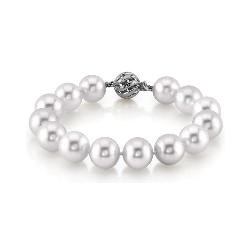 Imagine adorning your wrist with a bracelet that showcases the unparalleled beauty of White South Sea pearls. Each pearl in this exquisite piece ranges from 11.0 to 12.0mm, delivering a stunning presence with its silvery-white hue and luminous glow. The luxurious luster and thick nacre layers of these pearls make them a true treasure to own. Crafted with care, the pearls are individually double-knotted on fine white silk, and finished with a choice of a beautiful 14K Gold clasp, ensuring that you’re not just wearing jewelry, but a unique work of art.